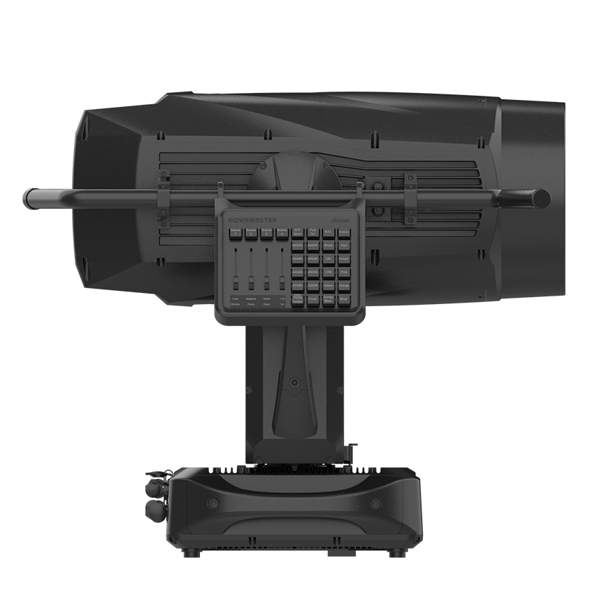 Pensando en aplicaciones específicas, ACME ha desarrollado una carcasa opcional para cámara, preparada para la integración con sistemas de seguimiento remoto de terceros. Asimismo, mediante el kit opcional de follow spot, que incluye empuñadura y panel de control, la SUPERNOVA LT puede operarse manualmente como un seguimiento tradicional, permitiendo controlar intensidad, temperatura de color y dirección del haz con una respuesta directa y precisa.