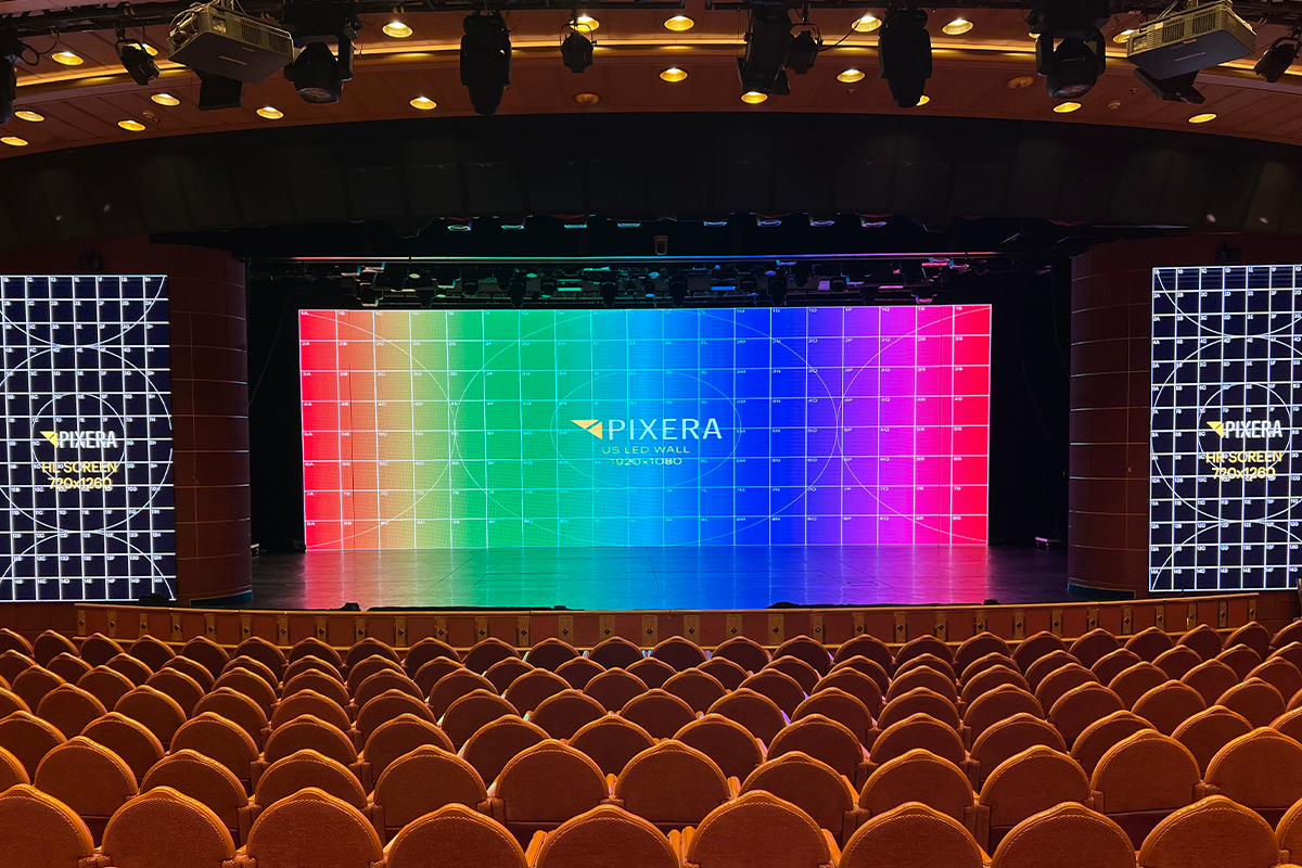 En estas embarcaciones, los pasajeros pueden disfrutar de contenidos LED gestionados por PIXERA en una amplia variedad de espacios, desde los teatros principales y salones interiores hasta clubes de comedia y zonas de entretenimiento más reducidas.