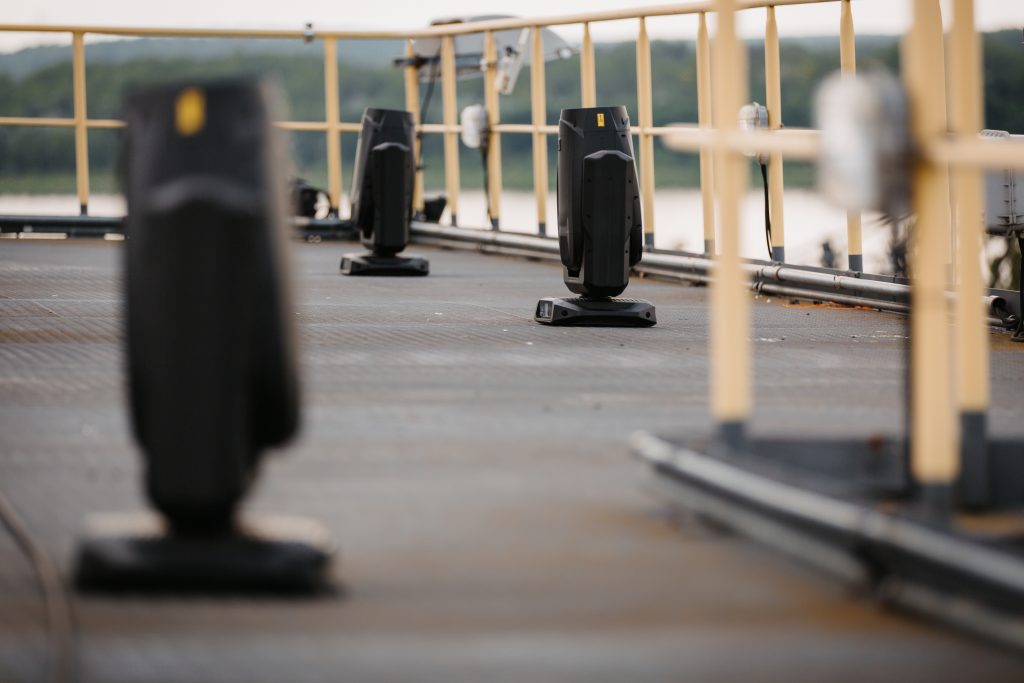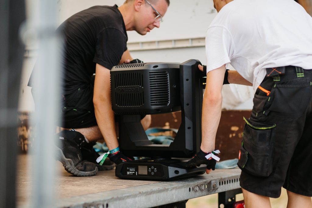El equipo de i:TECS colocó 30 ORON H2 en total en los tejados y en los brazos de las cuatro excavadoras de rueda de cangilones de Ferrópolis, para iluminar las carreras con efectos increíbles. «Hemos ampliado considerablemente el plan de iluminación de IRON DRIFT KING en comparación con el año pasado, y decidimos colocar cabezas móviles en las excavadoras para subrayar el ambiente industrial que caracteriza a Ferrópolis y enfatizar el dinamismo de las carreras», cuenta Robin Ziegler, de i:TECS. «Al combinar una elevada potencia lumínica con un zoom flexible y la resistencia a la intemperie IP65, el ORON H2 era el foco perfecto». Dada la dificultad de acceder a las excavadoras, las asas empotradas del ORON H2 facilitaron mucho las labores de instalación a todo el personal.