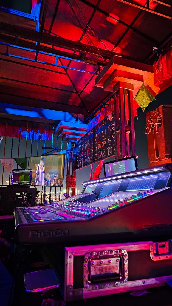 Durante 12 horas ininterrumpidas de actuaciones musicales, danzas tradicionales, discursos espirituales y meditaciones guiadas, la gestión de más de 128 canales de audio, 24 IEMs y 12 monitores de escenario supuso un reto logístico de primer nivel.