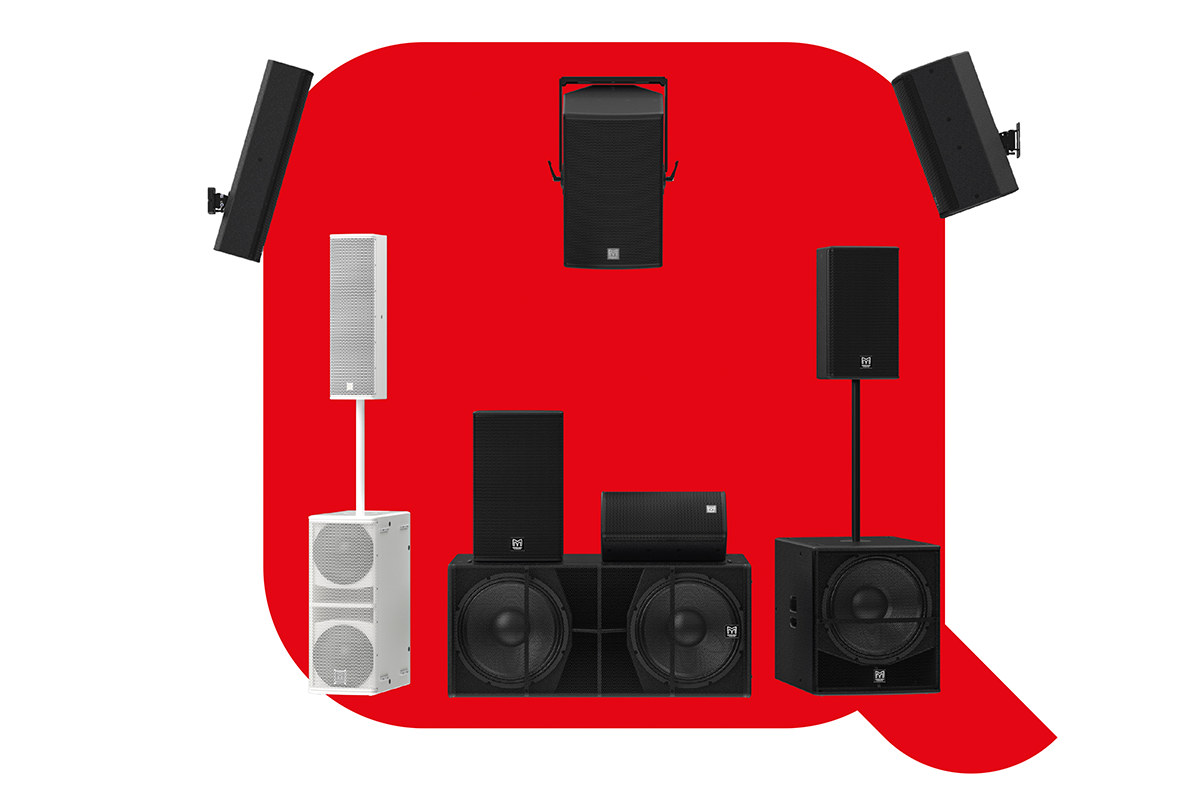 Los modelos Q8, Q10, Q12 y Q15 cuentan con recintos simétricos de madera multiposición, adecuados para montaje vertical u horizontal, y ofrecen una amplia gama de accesorios de fijación como soportes de pared, yugos, ojales para suspensión o adaptadores para mástil. Cada altavoz incluye una tapa de ocultación del mástil para mantener un aspecto limpio cuando no se utiliza.