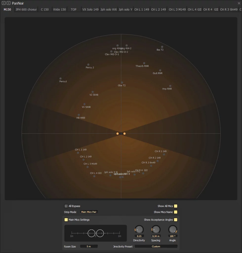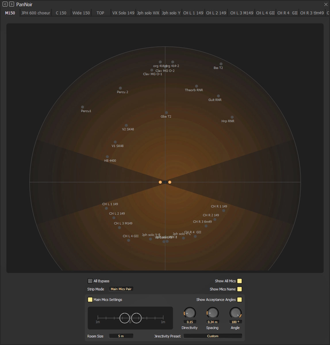 Otra de las incorporaciones destacadas es PanNoir, una nueva herramienta desarrollada en colaboración con el ingeniero Jean-Daniel Noir. Su objetivo es mejorar la integración de micrófonos de refuerzo (spot mics) dentro de una mezcla estéreo basada en un par principal.