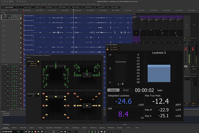 El sistema soporta configuraciones de altavoces de hasta 9.1.6, así como monitorización binaural para auriculares. También incluye funciones de Live Re-Render, que permiten generar diferentes versiones de mezcla en tiempo real y medir niveles de sonoridad mediante el módulo Final Check.