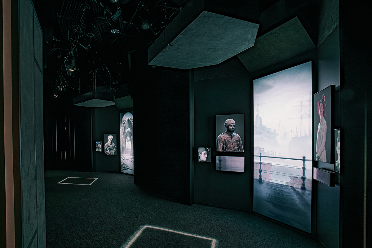 En el centro del proyecto se encuentra Encounters, una experiencia compuesta por cuatro alcobas interactivas donde los visitantes activan contenidos al situarse sobre marcadores iluminados. Este sistema desencadena la aparición de personajes a tamaño real, basados en figuras reales de la Primera Guerra Mundial, que “entran” en escena al cruzar el encuadre.