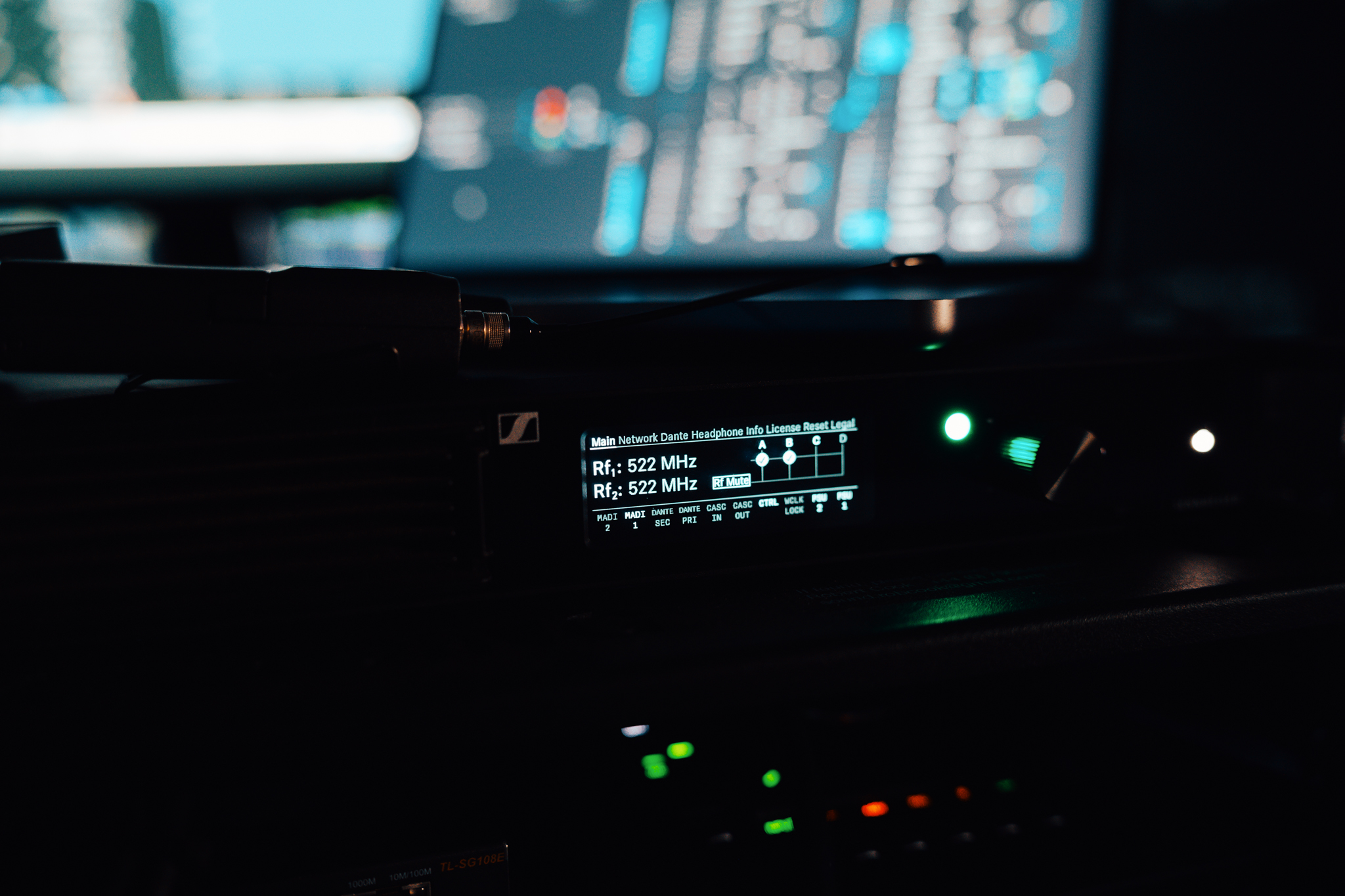 En total, se desplegaron seis petacas Spectera SEK para las mezclas IEM de DJs, MCs y artistas invitados como Becky Hill. La estación base se conectó a la consola de mezclas mediante MADI, integrándose directamente en el sistema existente. Para garantizar cobertura total, se utilizaron dos antenas, una instalada en la zona técnica y otra dentro de la estructura del helicóptero, conectadas por un tendido de ethercon de 100 metros, ambas operando en el mismo canal de televisión.